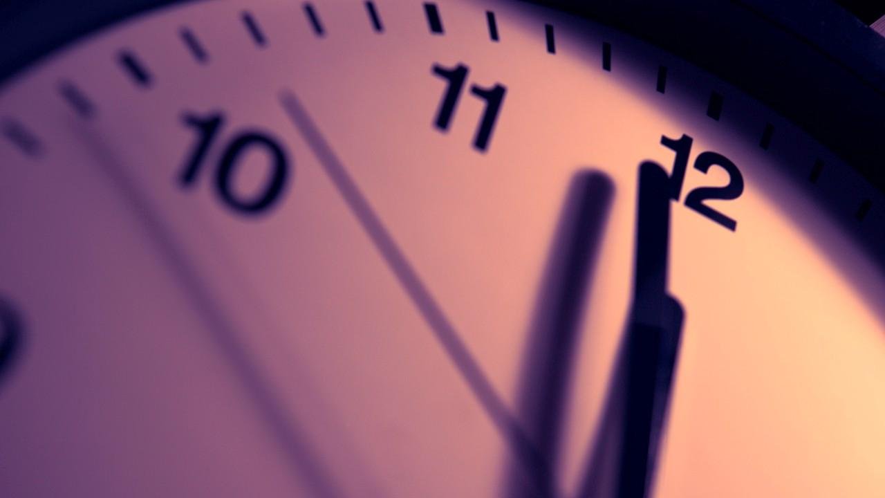 Başlangıçta, 1947 yılında gece yarısına 7 dakika kalagece yarısına 17 dakika kala olarak ayarlandı.